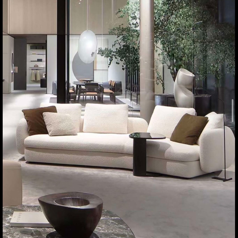 Elegant and comfortable 3-seater sofa with a unique curved design, perfect for modern interiors.